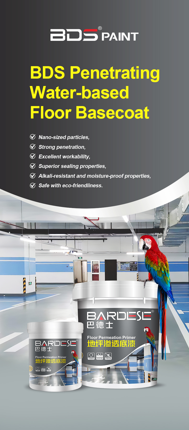 BDS Penetrating Water-based Floor Basecoat is a single-component interface material produced through a special process using environmentally friendly polymer emulsion and additives. Its core advantage lies in its strong penetration ability, which deeply seeps into the concrete substrate, while also featuring excellent sand fixation capability to firmly lock loose particles on the surface, effectively addressing the issue of substrate sanding. As the first critical process material in floor coating construction, it not only enhances the compactness of the base layer but also strengthens the adhesion between subsequent coatings and the floor surface, preventing issues like coating hollowing and peeling. This lays a solid foundation for the durability and aesthetic appeal of the entire floor coating project, making it suitable for various construction scenarios.