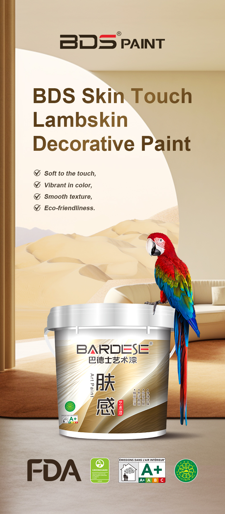 BDS Lambskin Feels Art Paintperfectly restores the original natural layered texture, with a delicate touch as smooth as baby skin. The texture is naturally layered, as if replicating the flowing vitality of nature. The elegant color and natural depth of the composite color texture, like rippling water waves, give shape to the flowing years. Applying it to home spaces, without the need for too many bright colors, the interplay of light and dark can give the space a unique vitality, conveying a sense of tranquility and freedom.